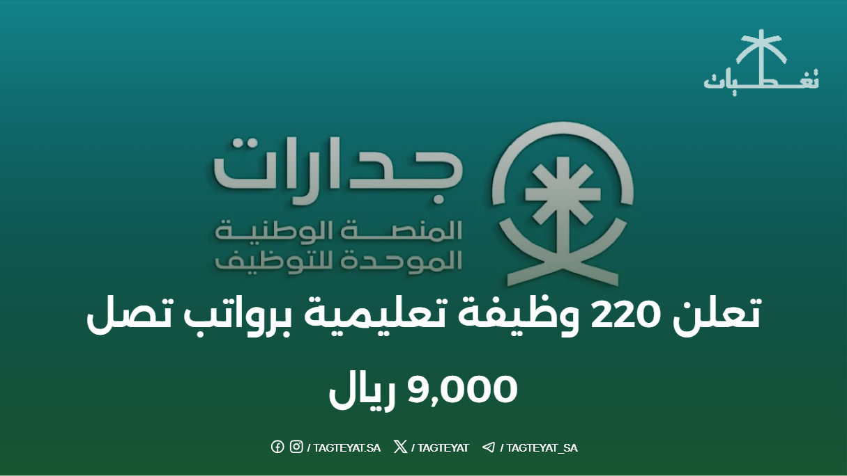 المنصة الوطنية الموحدة (جدارات) تعلن 220 وظيفة تعليمية برواتب تصل 9,000 ريال