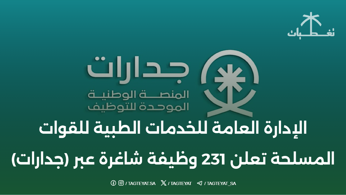 الإدارة العامة للخدمات الطبية للقوات المسلحة تعلن 231 وظيفة شاغرة عبر (جدارات)