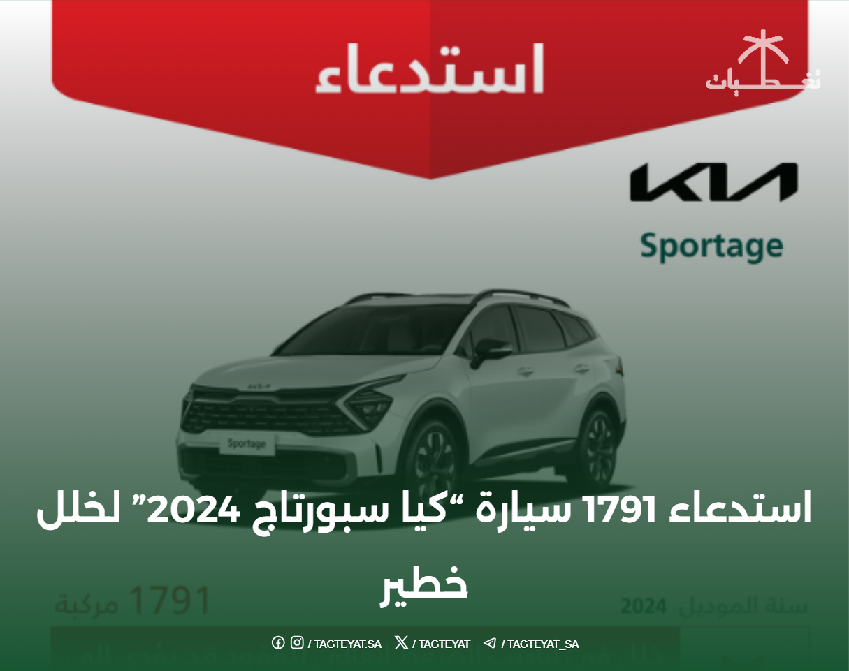 تغطيات – الرياض : أعلنت وزارة التجارة، عن استدعاء 1,791 مركبة من طراز “كيا – سبورتاج” موديل 2024، وذلك لخلل…