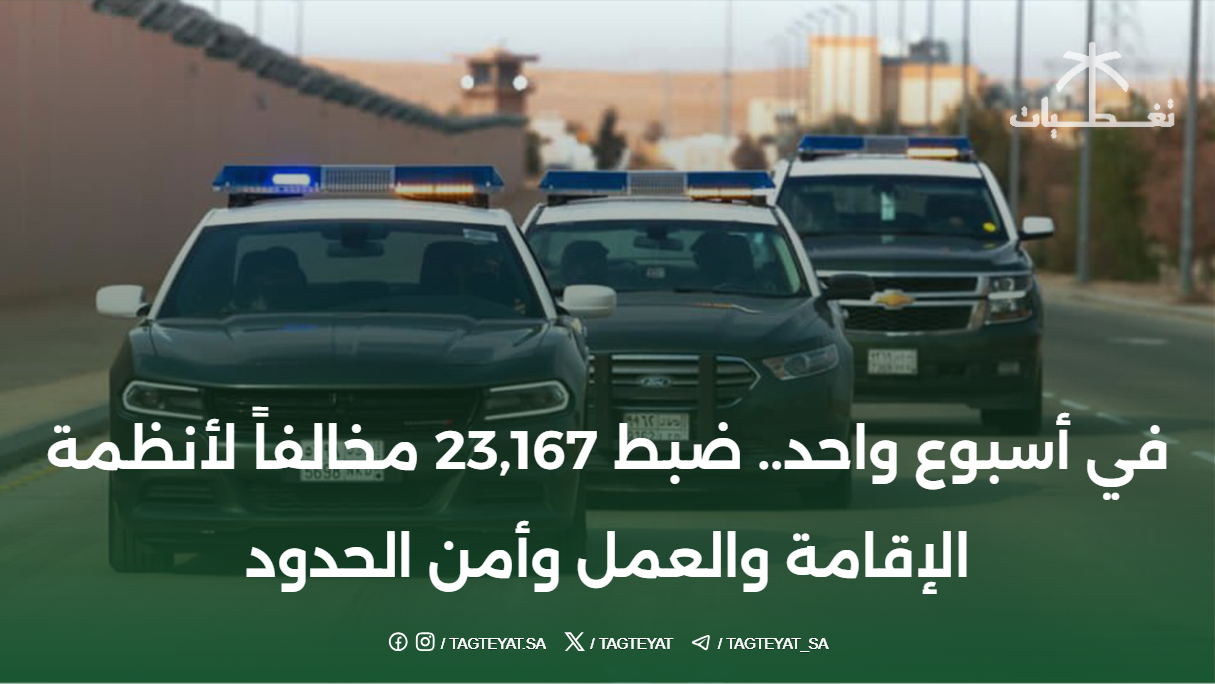 في أسبوع واحد.. ضبط 23,167 مخالفاً لأنظمة الإقامة والعمل وأمن الحدود