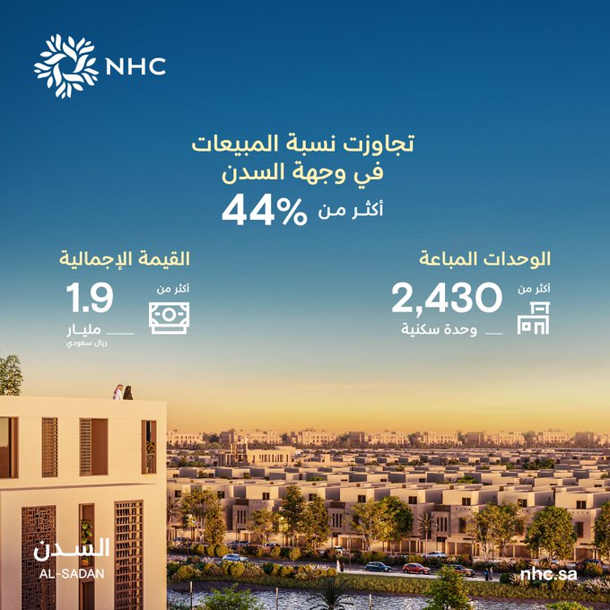 ويعود الإنجاز في المبيعات إلى إطلاق NHC للمرحلة الثانية من الوجهة خلال العام الحالي، مبينة أن المرحلة الأولى من السدن قد اكتملت حجوزاتها خلال فترة وجيزة من إطلاقها في الأول من شهر مارس الماضي، والتي قدمت فيها الوحدات السكنية بأسعار تنافسية تبدأ من 530 ألف ريال.