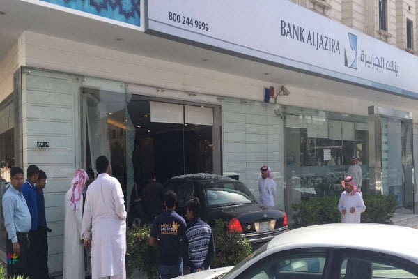 بالفيديو.. سيارة تقتحم مصرفاً في الرياض