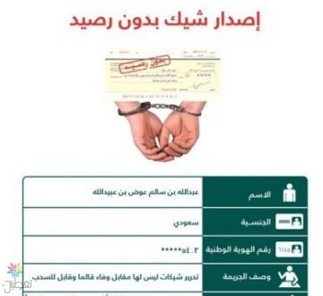 «التجارة» تشهر بمصدر شيك بدون رصيد