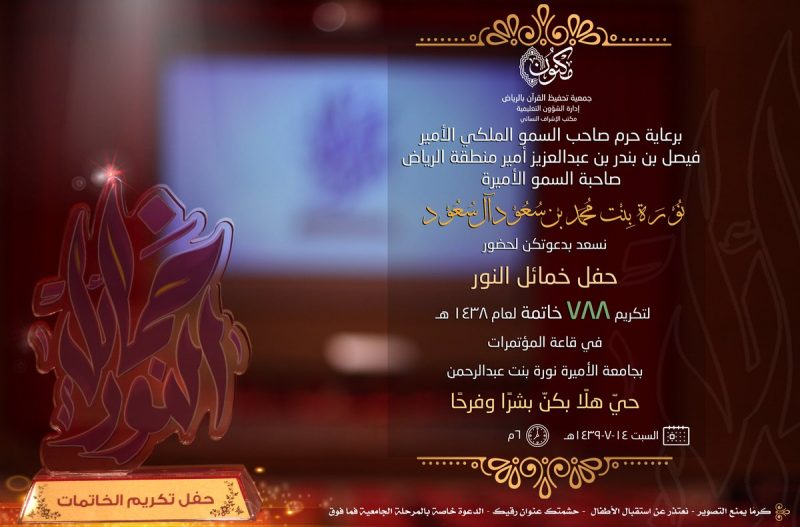 حرم أمير الرياض تكرم ٧٨٨ خاتمة لكتاب الله بجمعية (مكنون)