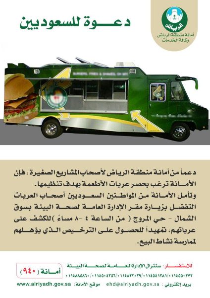 أمانة الرياض تدعو أصحاب عربات الأطعمة للحصول على تصاريح رسمية للعمل