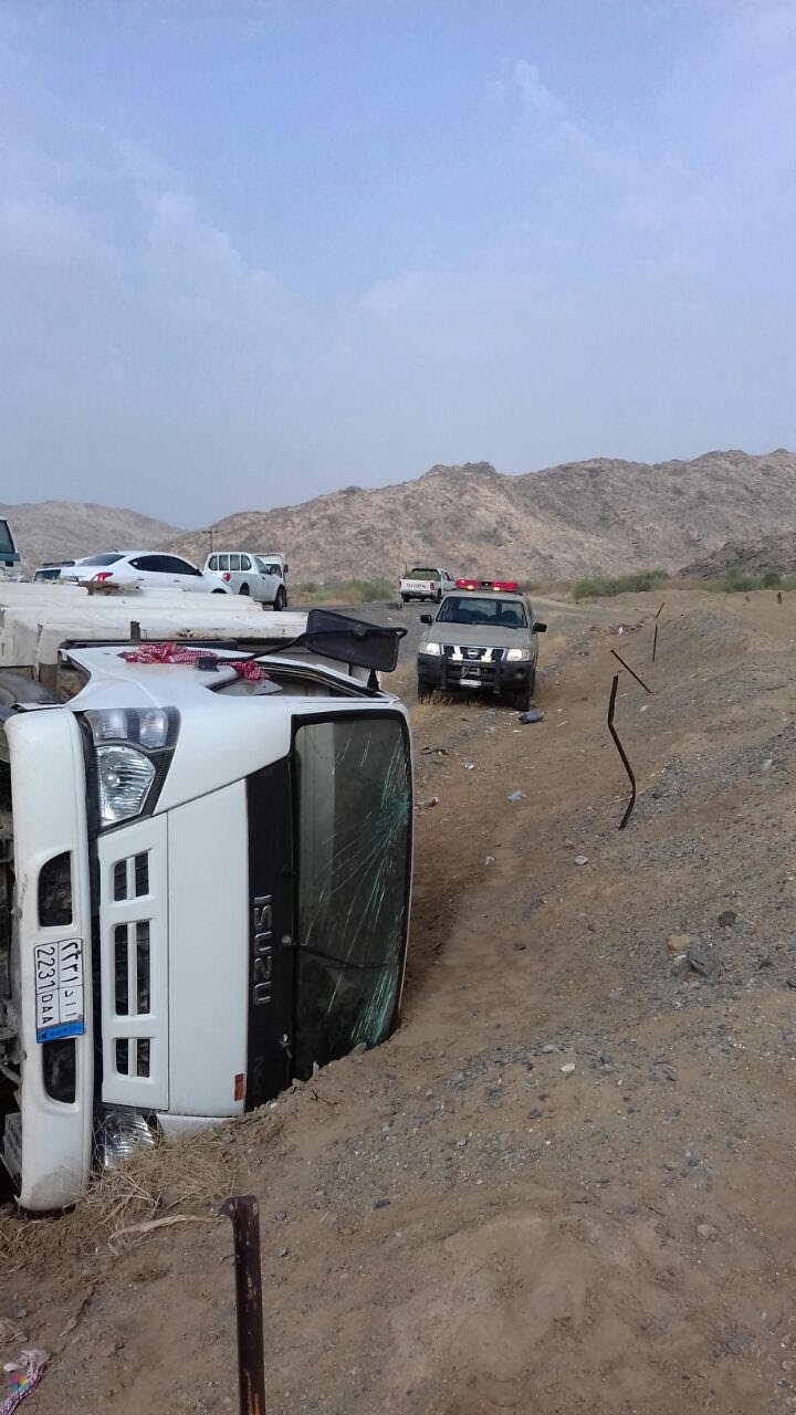 مصرع شخصين وثلاث إصابات في حادث إنقلاب بمفرق الهميلية طريق المدينه القديم