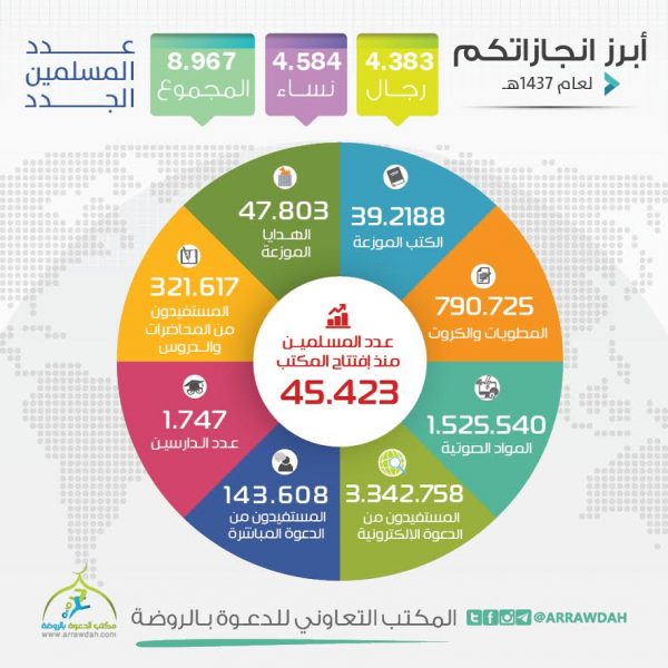 أبرز إنجازات مكتب جاليات الروضة بالرياض خلال عام 1437