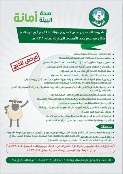 بدء إصدار تصاريح ذبح الأضاحي في مطابخ الرياض
