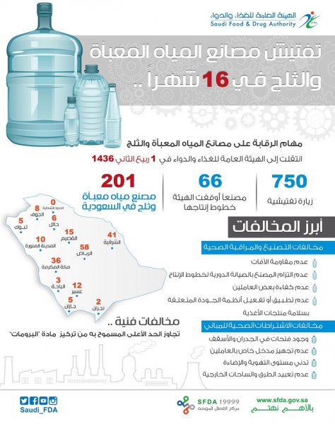 تغطيات -الرياض: أوقفت الهيئة العامة للغذاء والدواء خطوط الإنتاج في 66 مصنع مياه معبأة في مختلف مناطق المملكة، منذ نقل…