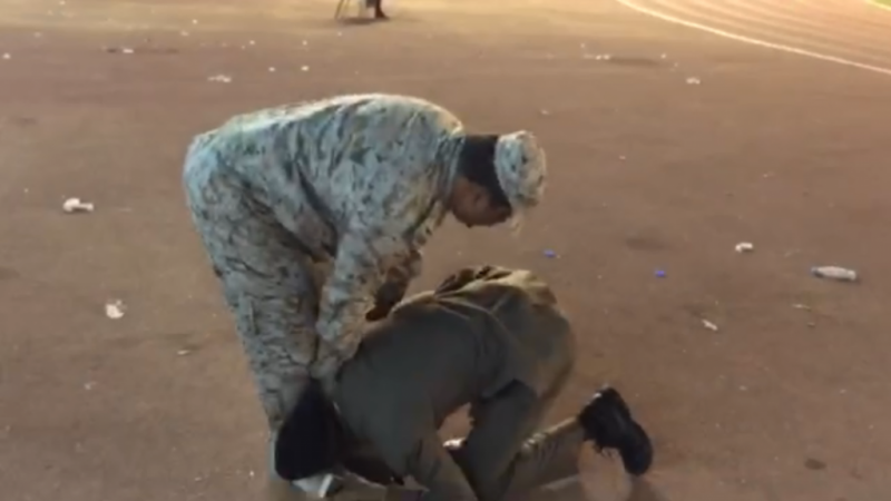 “رئيس رقباء” يقدم التحية العسكرية لابنه الضابط .. و الأخير يرد بتقبل قدمه في حفل التخرج “فيديو”