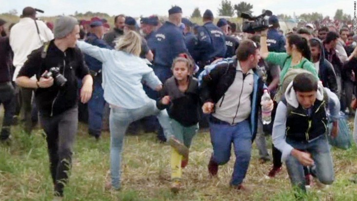السجن 3 أعوام لصحفية ركلت لاجئا سوريا