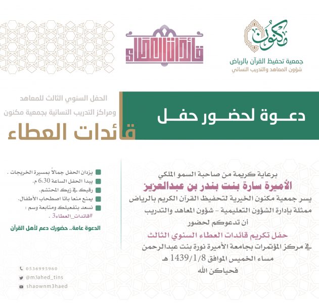 تغطيات – الرياض : برعاية كريمة من صاحبة السمو الملكي الأميرة سارة بنت بندر بن عبد العزيز، تقيم جمعية تحفيظ…