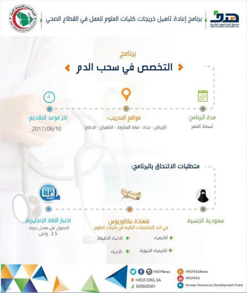 “هدف” و”التخصصات الصحية” يعلنان عن بدء التسجيل ببرنامج سحب الدم لخريجات كليات العلوم حتى 10 يونيو القادم