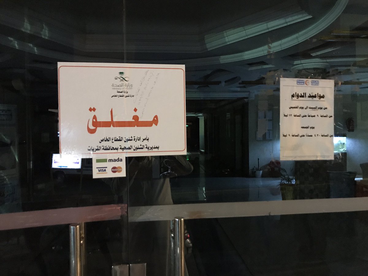 صحة القريات تغلق مستوصفين ومحل نظارات