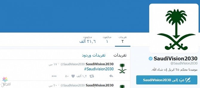 افتتاح حساب «الرؤية السعودية 2030» على تويتر