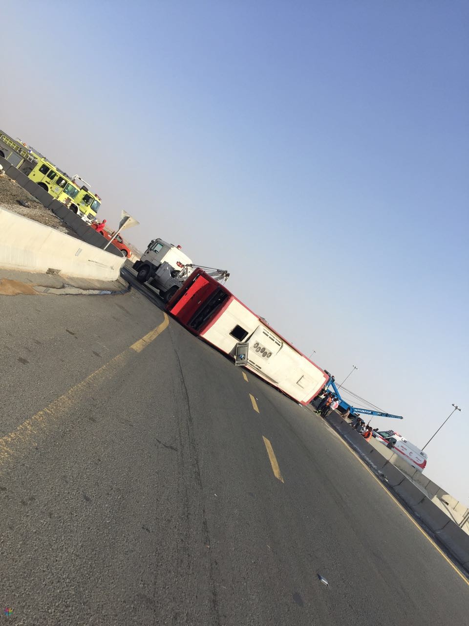 تغطيات – مكة المكرمة : حادث سير على باص حجاج الموقع كوبري صعبر المؤدي لمدينة الملك عبدالله الإقتصادية الساعة 07:01صباحاً…