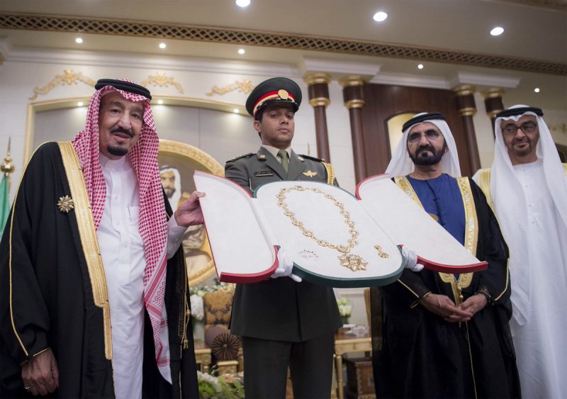 الشيخ محمد بن زايد يقلد خادم الحرمين ” وسام زايد “