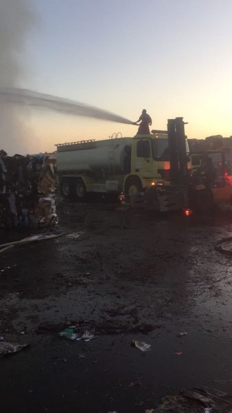 بالصور .. حريق في أحد مصانع الورق بالدمام