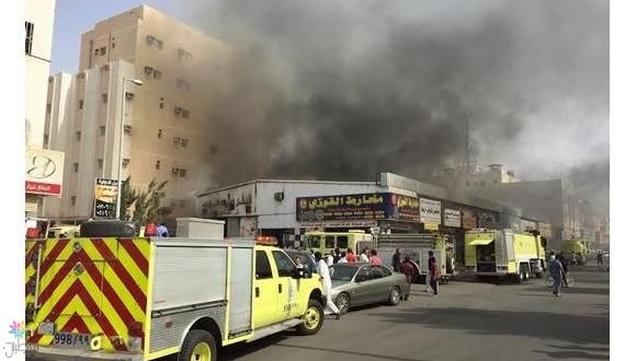10 فرق إطفاء تحاصر حريق مستود قطع غيار شمالي جدة