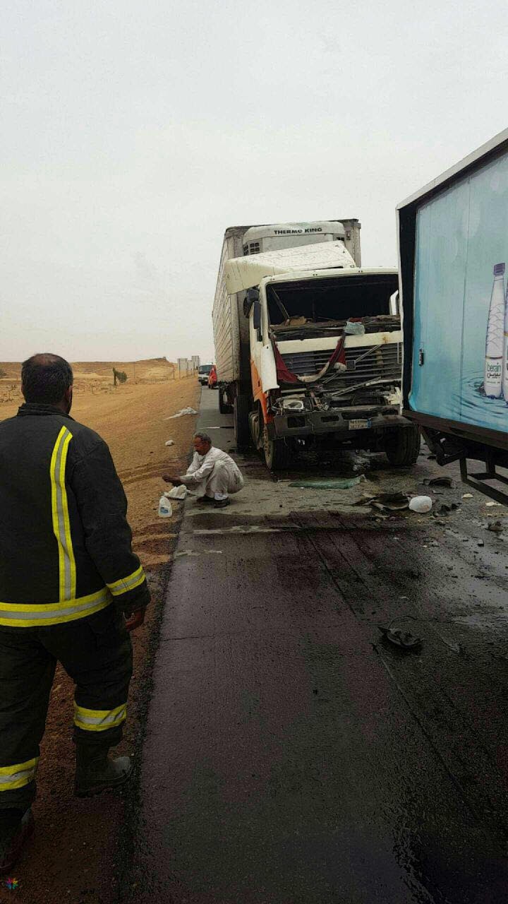 ارتطام دينّا بشاحنة على سريع القصيم وثلاث فرق من الهلال الأحمر بالقصيم يباشرون