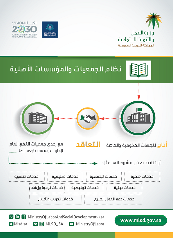 “العمل”:يحق للجهات الحكومية والخاصة التعاقد مع جمعيات أهلية لإدارة مؤسساتها أو تنفيذ مشاريعها