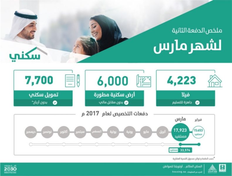 “الإسكان” تعلن الدفعة الخامسة من برنامج “سكني 2018” وتخصص 21.6 ألف منتج