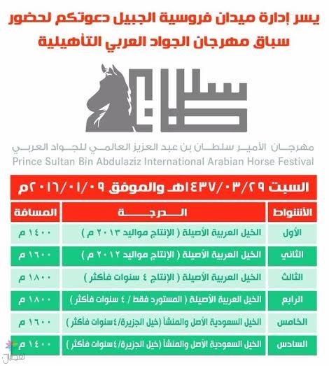 ميدان فروسية الجبيل يقيم حفله الثامن الجمعة ويعلن البرنامج النهائي